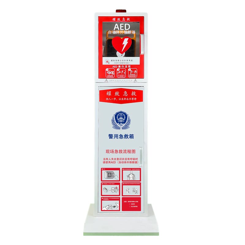 AED箱體:配置三角牌可自行選擇拆裝。大容量儲(chǔ)物柜可容納消防器材或急救包等。